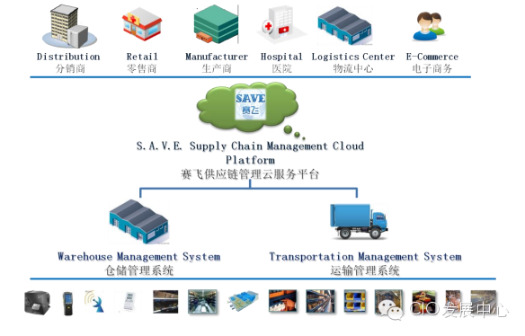 所就是我们把我们的分销商、零售商、生产商、医院、物流中心、仓库管理中心、运输管理平台通过赛飞平台整合起来,形成一个新的供应链的物流的服务。