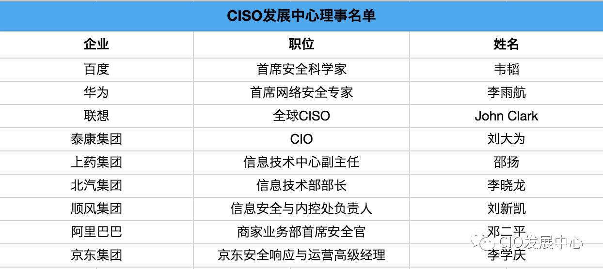 华为首席网络安全专家李雨航为CISO发展中心成立发来贺词,并介绍了华为安全部署。CIO发展中心的创始人杨超为CISO发展中心的理事成员颁发理事证书,并宣布CISO发展中心正式成立,CISO发展中心也致力于旨在通过搭建平台,促进企业及机构之间的网络信息安全信息共享和交流;通过专家资源的输出和共享,增强企业对网络安全威胁的应变能力、为企业信息安全保驾护航;通过培训和认证,体系化培养网络信息安全领域的专业高阶人才,增强企业在网络信息安全领域的人才储备。通过各种专业人才和机构的引入,打造网络信息安全生态圈。