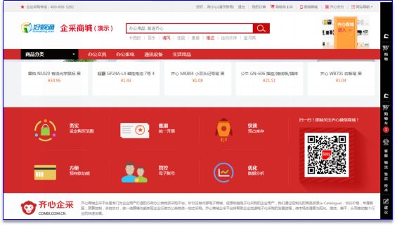 齐心政采:随着公共资源交易体制改革政策进一步落地,齐心基于对政府型客户的需求在服务、商品、技术三个层面的深刻理解,不断提升自我能力,提供聚合平台接入、LINK接入、API接入等多种接入模式,及O2O本地化服务,高效快捷,实现无缝衔接和数字化交互,互联互通,实现最合理的精准商品需求推送、线上采购和订单管理、流程追踪,让客户实现办公用品、行政物资类公共资源采购的统一管理。